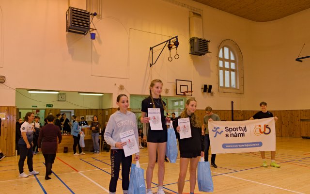Ve třech kategoriích změřilo síly celkem 170 závodníků z 11 základních a středních škol. V kategorii dívek - střední školy se na stupních vítězů umístily naše studentky. Výkonem 155 cm zvítězila Nela Vybíralová (3.C), druhá Veronika Holcová překonala laťku ve výšce 150 cm a třetí Magdalena Klečacká skočila 145 cm (obě 2.B). Všechny dívky si svými skoky vylepšily osobní rekordy.
